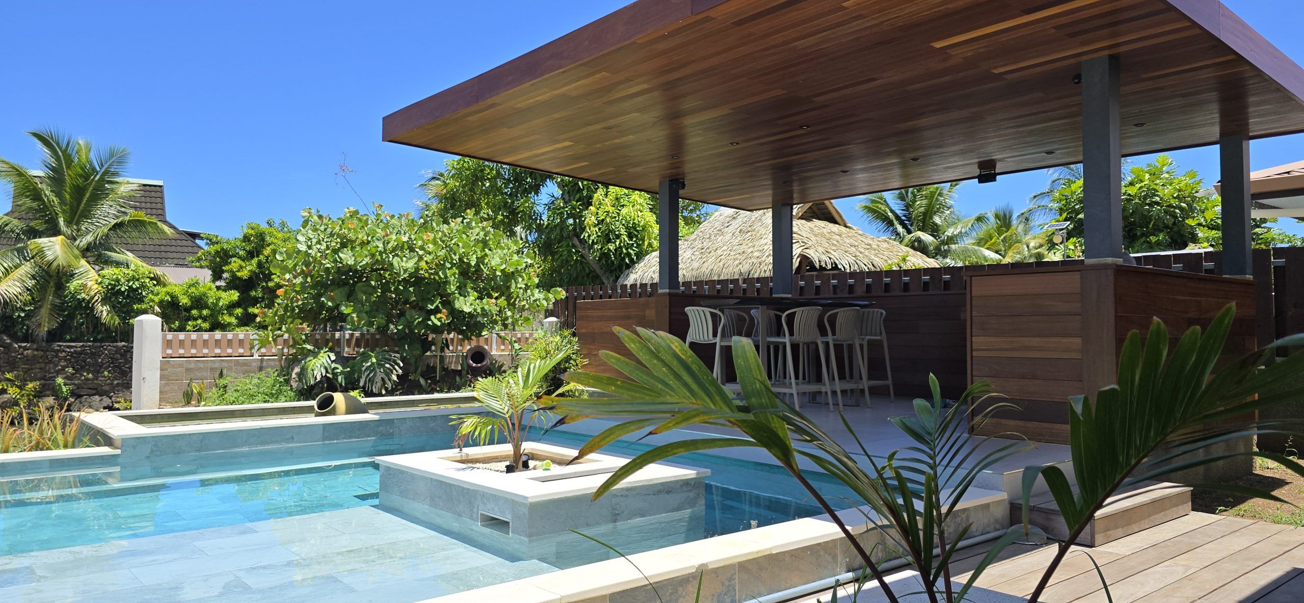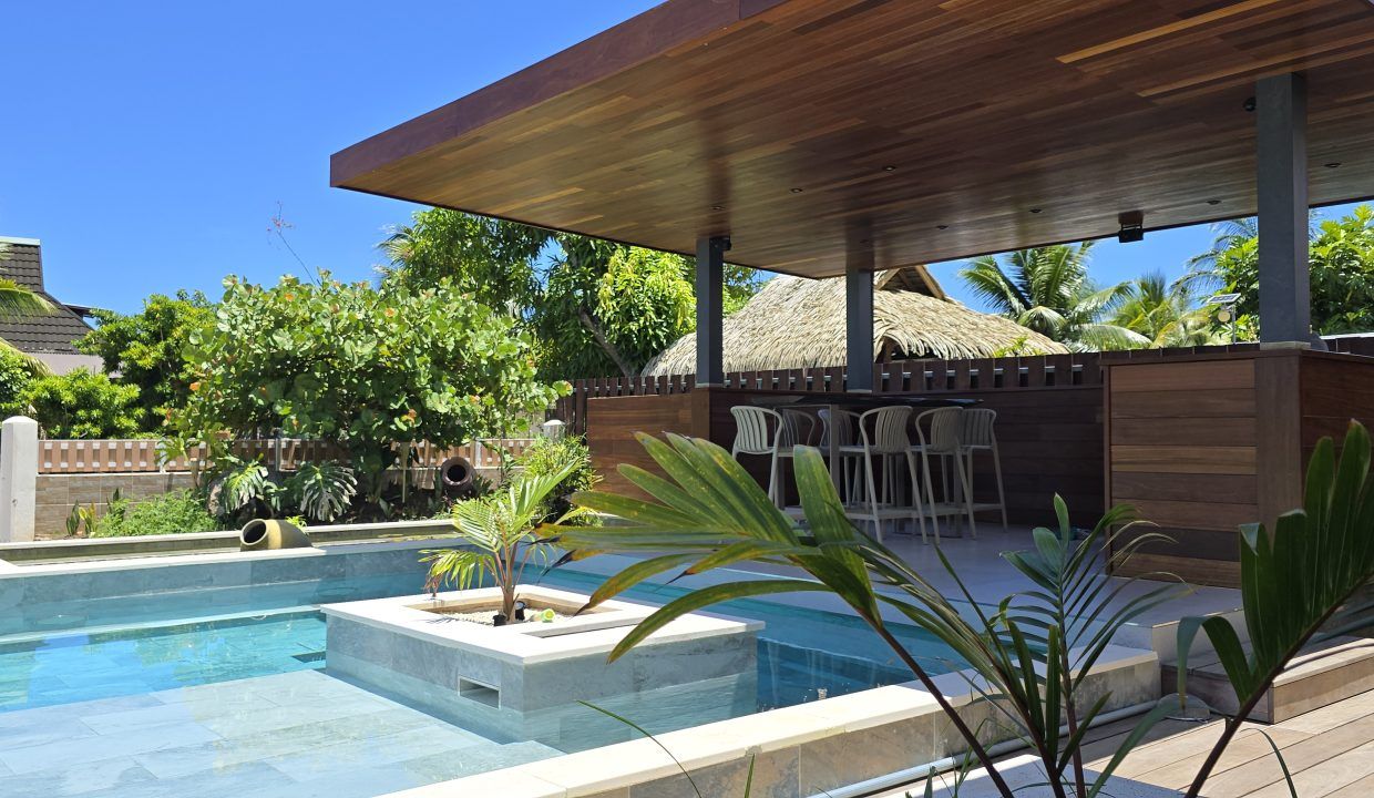 • Covered outdoor kitchen under a fare pote’e